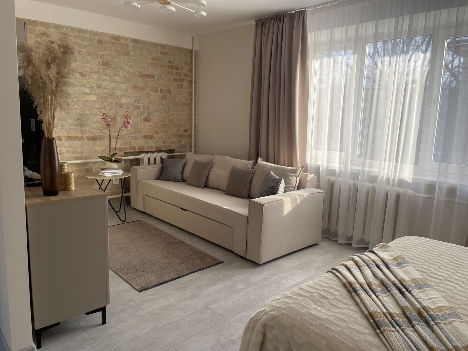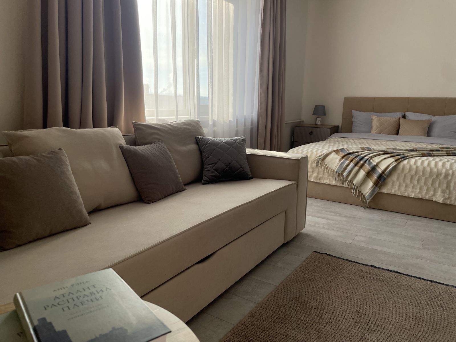 В апартаментах находится все необходимое для Вашего комфортного отдыха: удобная кровать, уютный диван, телевизор и интернет. Кухня полностью оборудована для приготовления пищи.