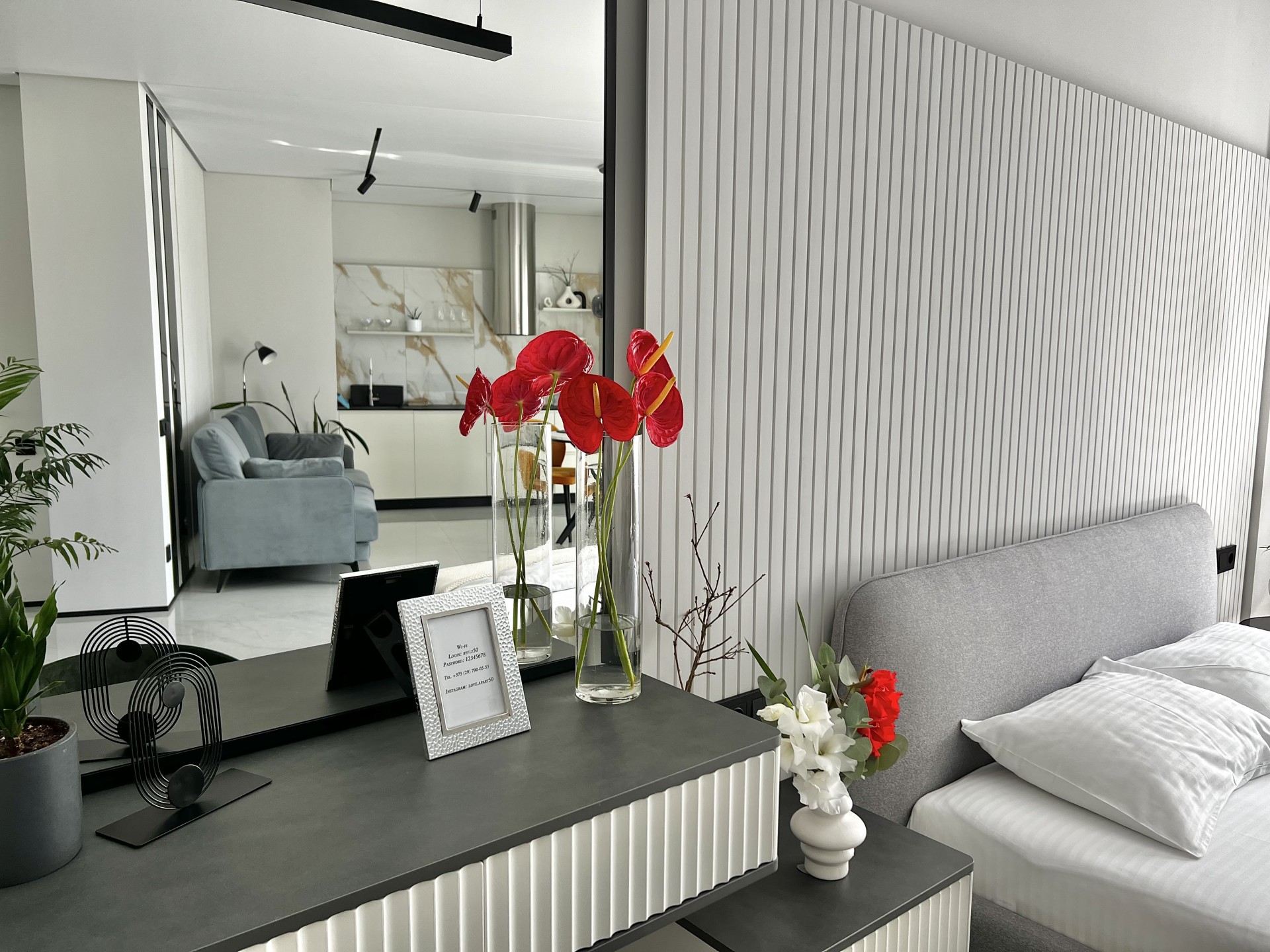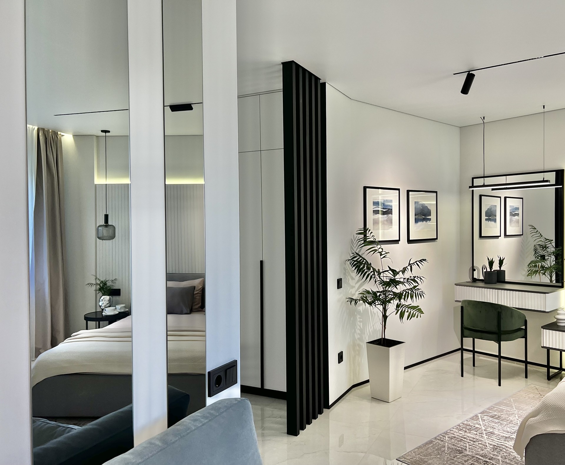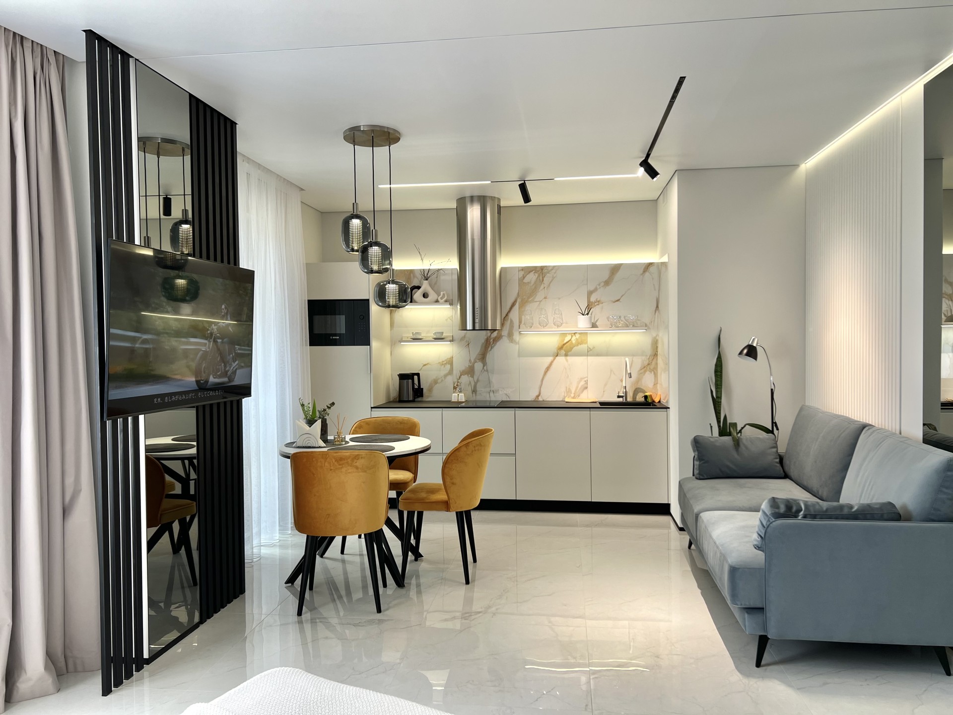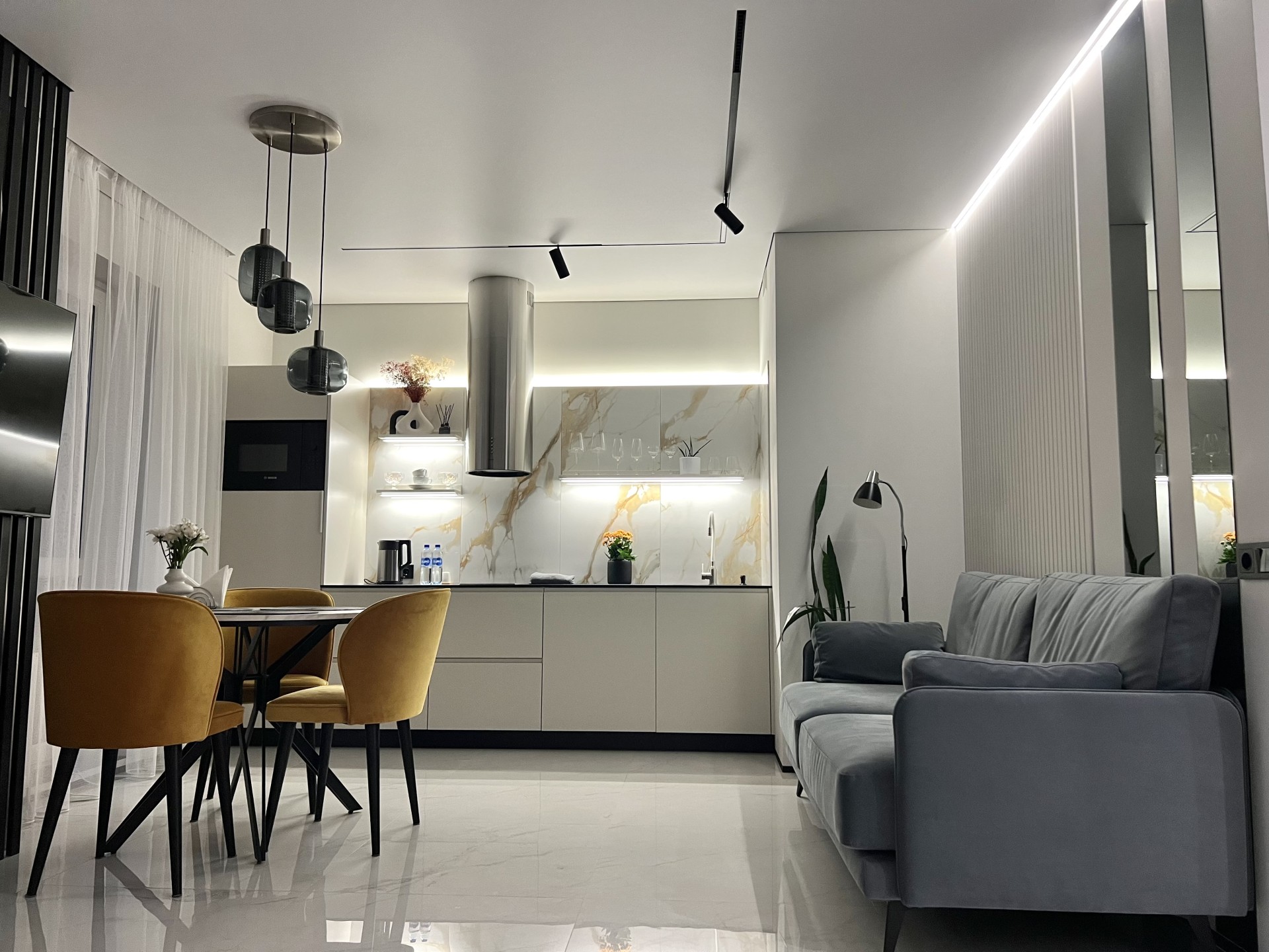 Новая и стильная квартира-студия с дизайнерским ремонтом в новом районе, рядом с центром и достопримечательностями.