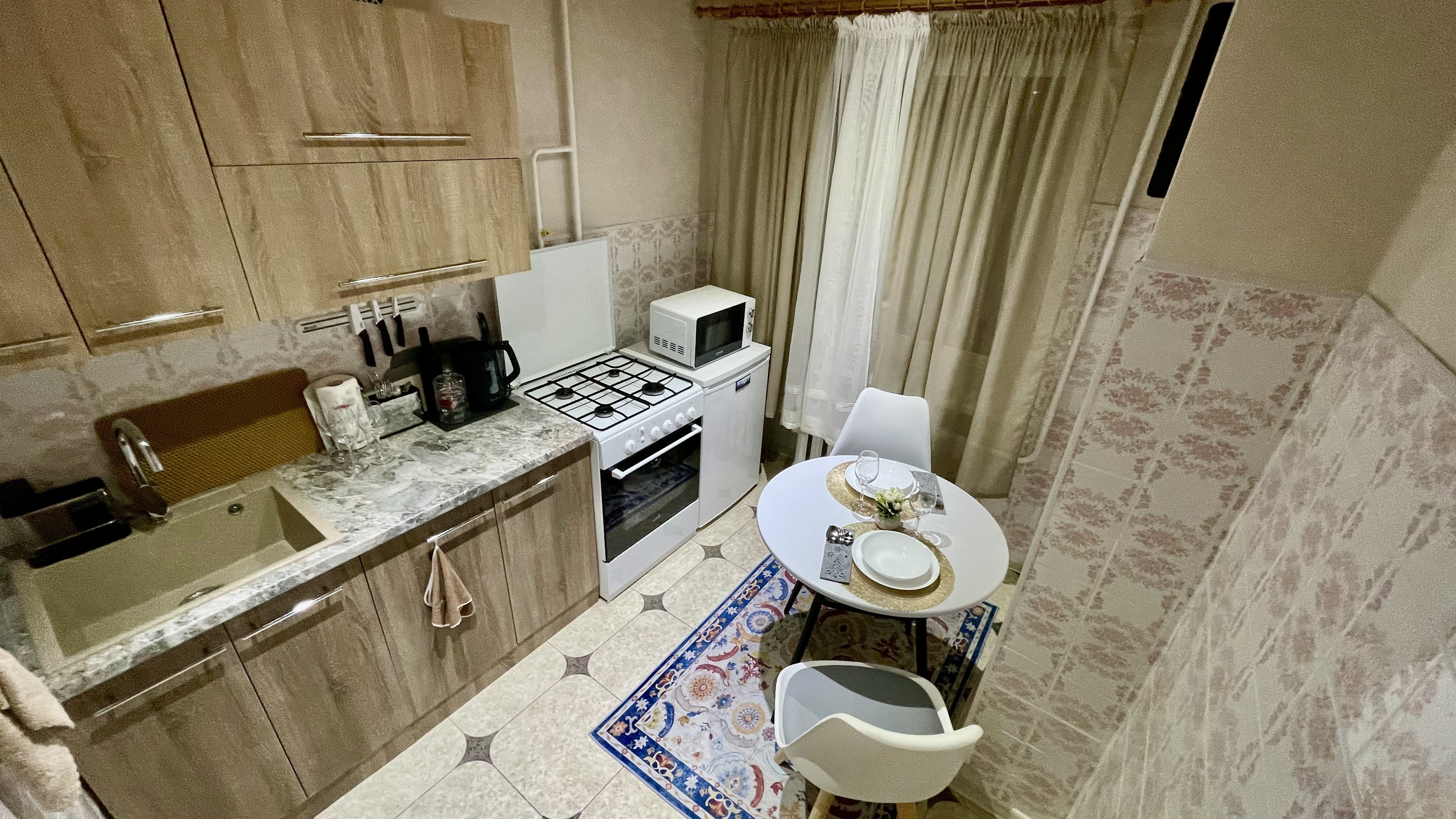 УдобстваБеспроводной интернет Wi-Fi, Телевизор, Домофон, Полотенца, Кабельное/спутниковое телевидение, Постельное бельё, Мыло, Туалетная бумага, Стиральная машина, Кофе, чай, Утюг, Фен, Шампунь, Застеклённый балкон/лоджия, Ванна, Холодильник, Микроволновая печь, Посуда